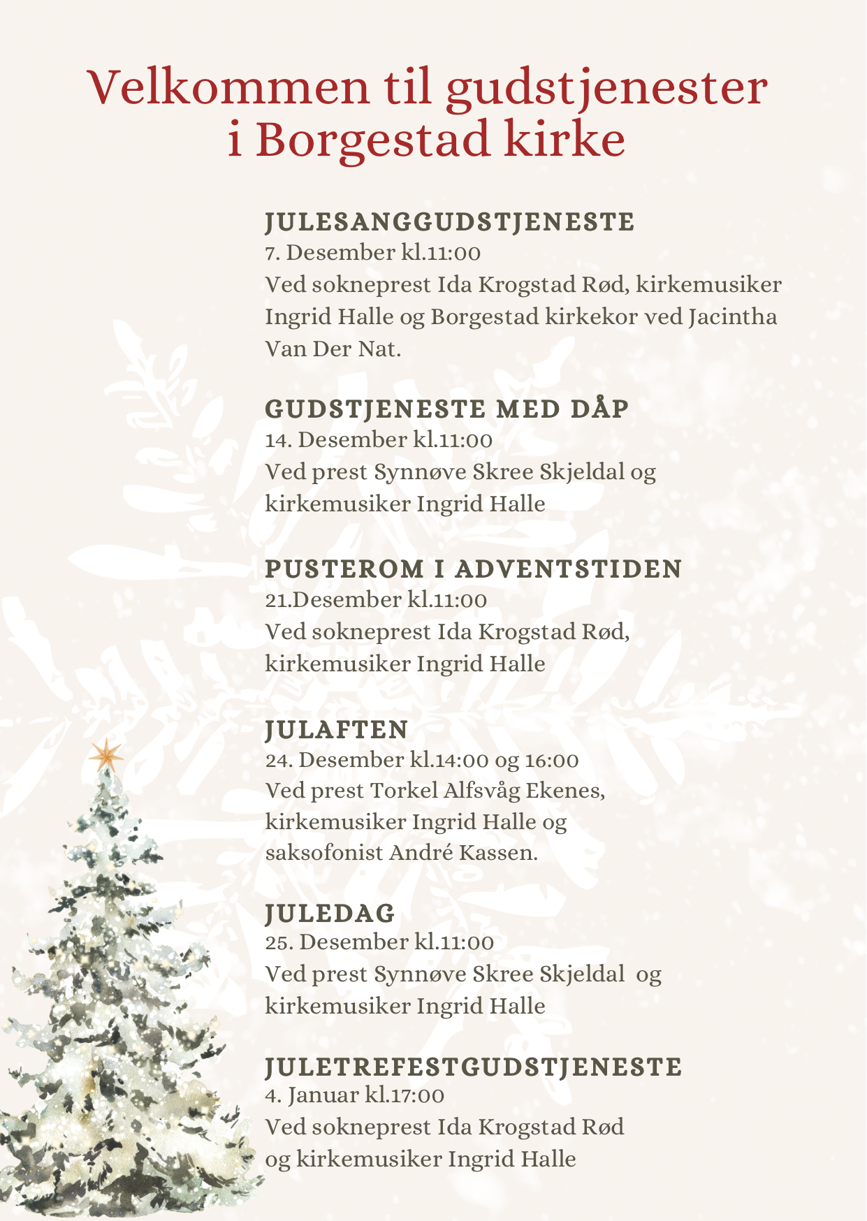 Her er oversikten over alle gudstjenestene i desmeber i Borgestad kirke. Velkommen!