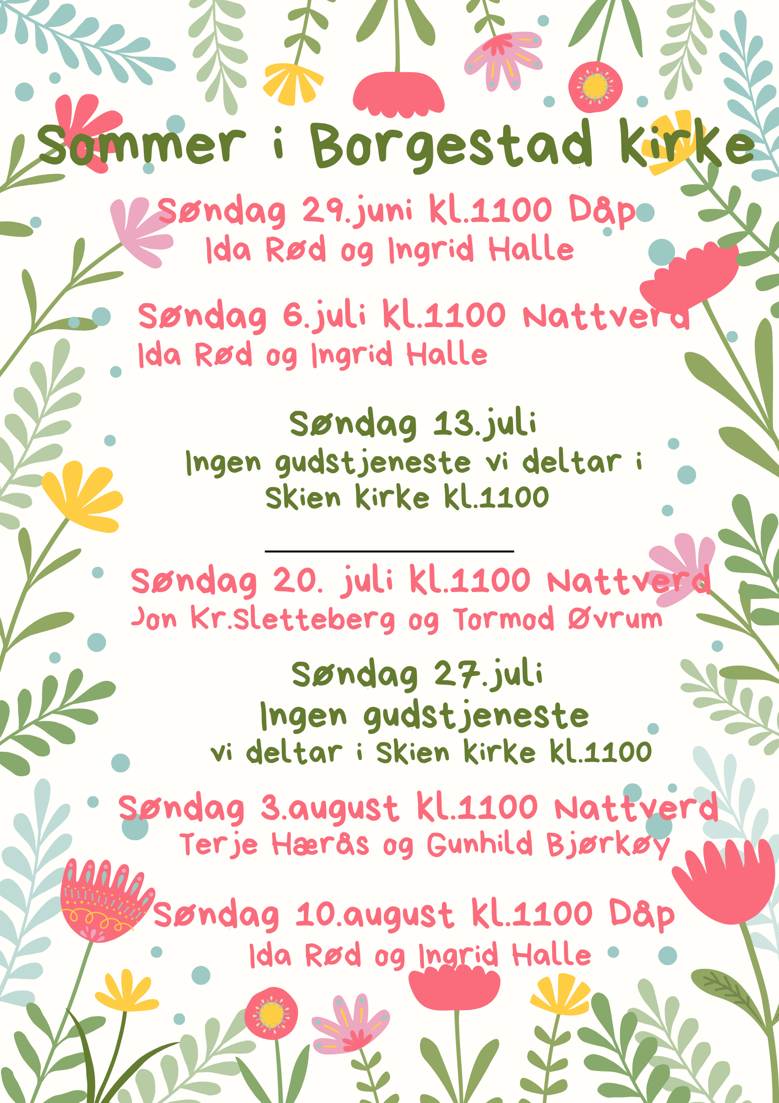 Her finner du oversikten over sommerens gudstjenester i Borgestad kirke.